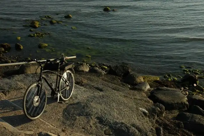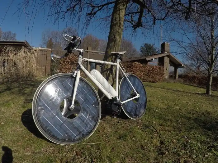 В Дании изобрели велосипед, который может приводиться в движение не только при помощи педального привода, но и благодаря энергии солнца. Разработка под названием Solarbike оснащена солнечными батареями, вмонтированными в колеса, встроенным в раму аккумулятором и электродвигателем. Полностью зараженного аккумулятора хватит примерно на 70-80 километров пути. Максимальная скорость при использовании энергии солнца составляет 25 км/ч, если при этом еще крутить педали, то можно разогнаться свыше 50 км/ч. В далеко не самом солнечном городе Копенгагене за один световой день аккумулятор заряжается на столько, что велосипед может проехать от 2 до 25 км. Дальнейшая судьба проекта не известна.
