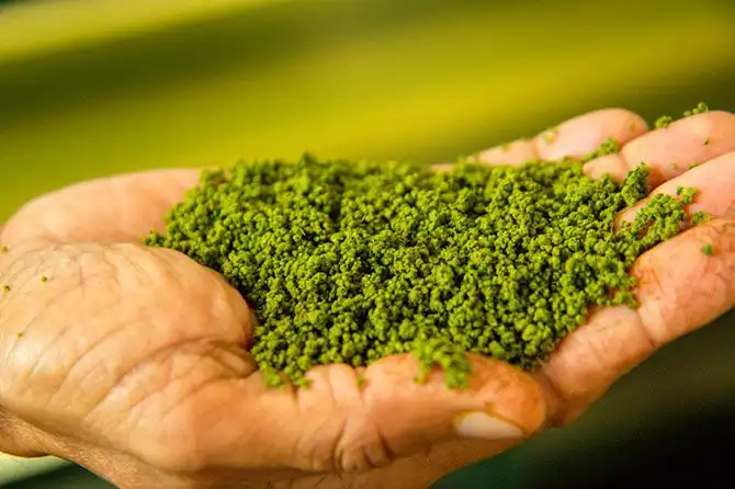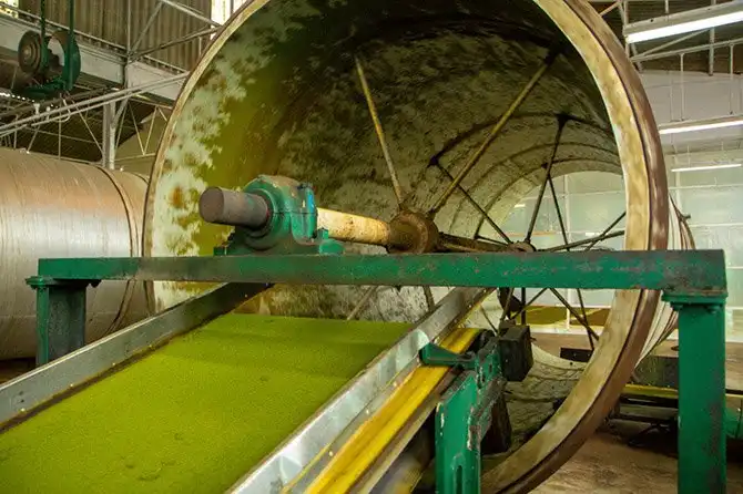 Листья, превращенные в порошок, попадают в этот цилиндр.