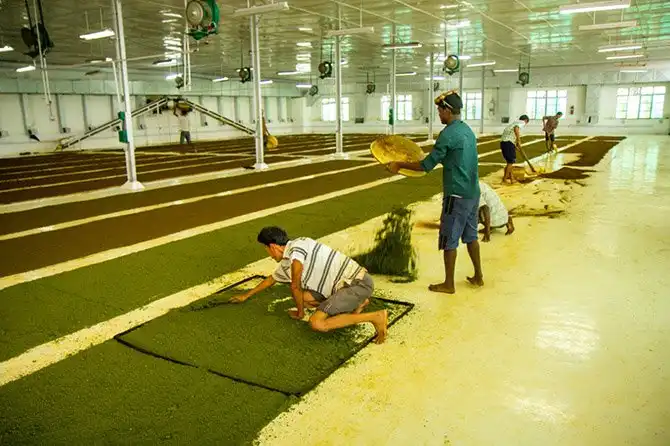 Из 25 кг свежих листьев получают 6 кг готового чая