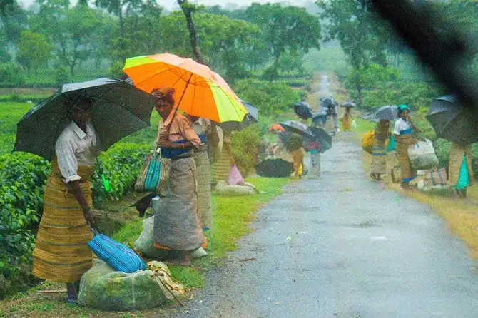 Чайные кусты специально подрезают, чтобы было удобно собирать верхние листочки. Да, только два верхних и росток.
