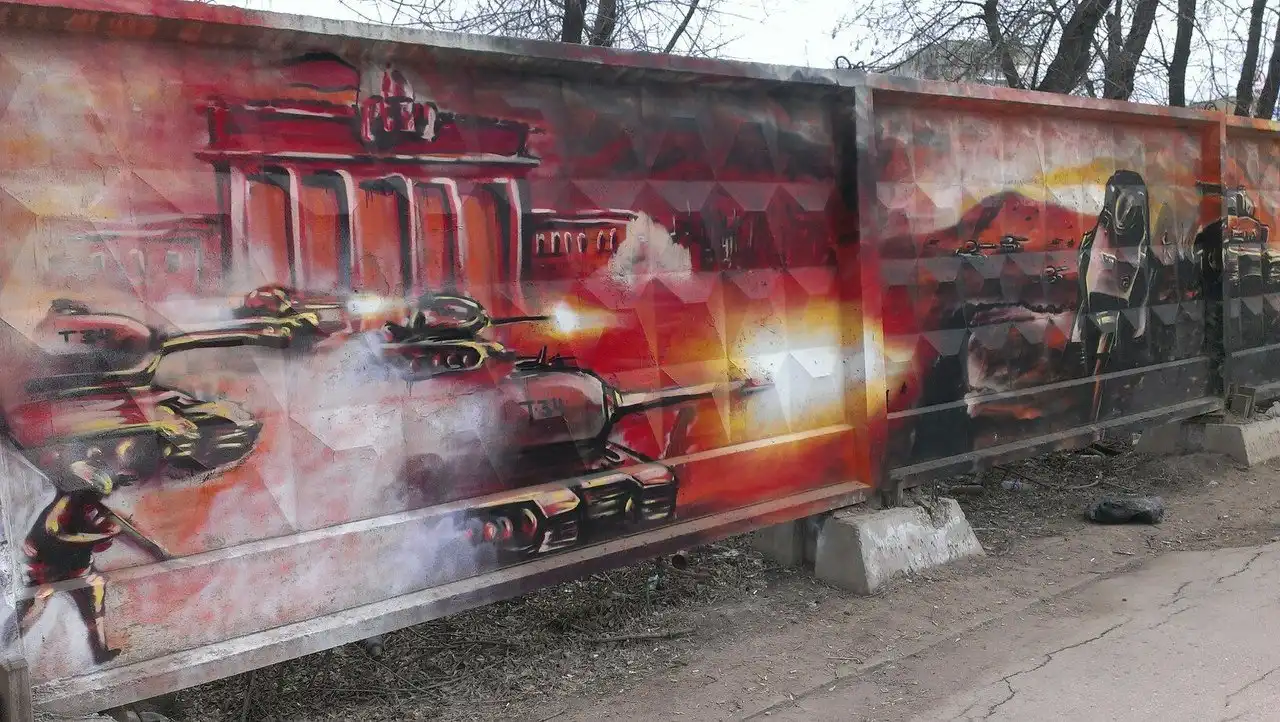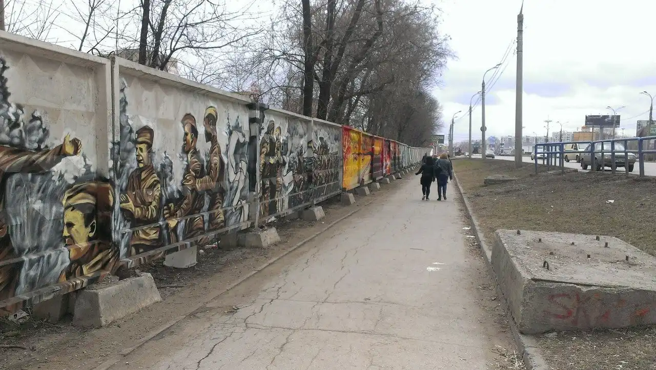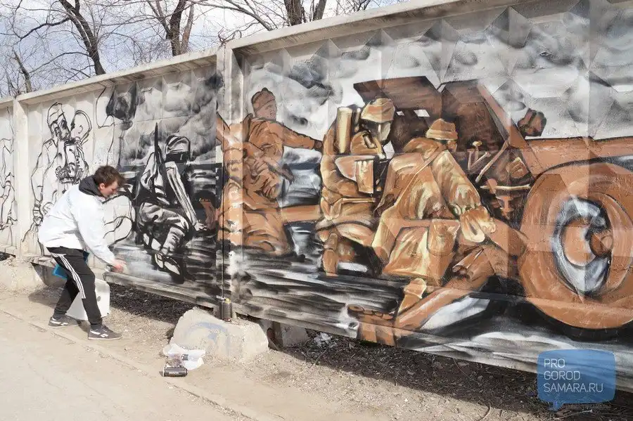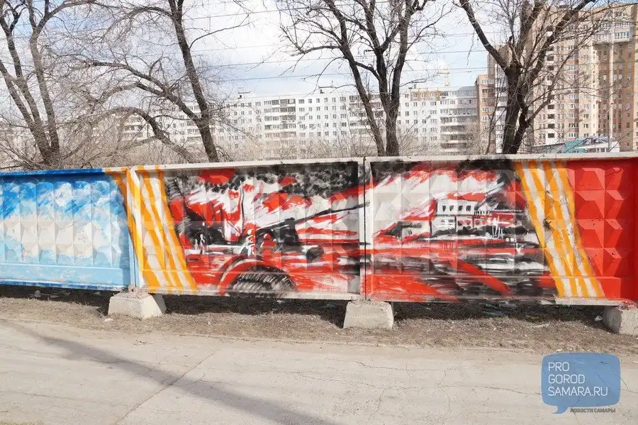 В середине апреля в Самаре стартовал проект патриотичных граффити, которые художники наносят на серые заборы яркие рисунки с симоволами и эпизодами Великой Отечественной войны. Некоторые работы самарских художников можно уже сегодня увидеть на Московском шоссе межу проспектом Кирова и улицей Димитрова. Конкурс граффити приурочен к 70-летию Победы.