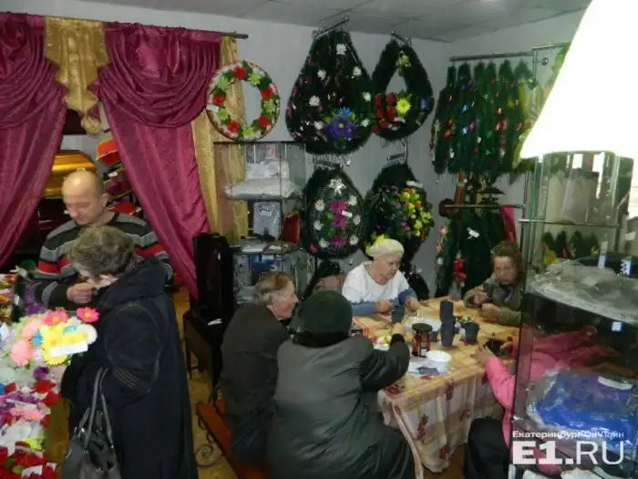 Екатеринбургская компания, оказывающая ритуальные услуги, решила устроить праздничное чаепитие для ветеранов Великой Отечественной войны. Все бы ничего, да вот только стол с вкусностями и горячительными напитками накрыли прямо в ритуальном зале в окружении гробов, крестов, памятников и венков. Сами пенсионеры, конечно же, смутились такому гостеприимству, однако, представители компании не видят в этом ничего особенного, так как подобное застолье они организовывают уже шестой год подряд в Родительский день.