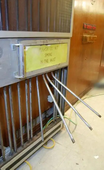 Для того чтобы пробраться внутрь преступники использовали специальную бурильную установку. С ее помощью в 50-сантиметровой стене из железобетона они проделали отверстие шириной 45 см и высотой 25 см. На всю операцию грабителям понадобилось несколько дней.