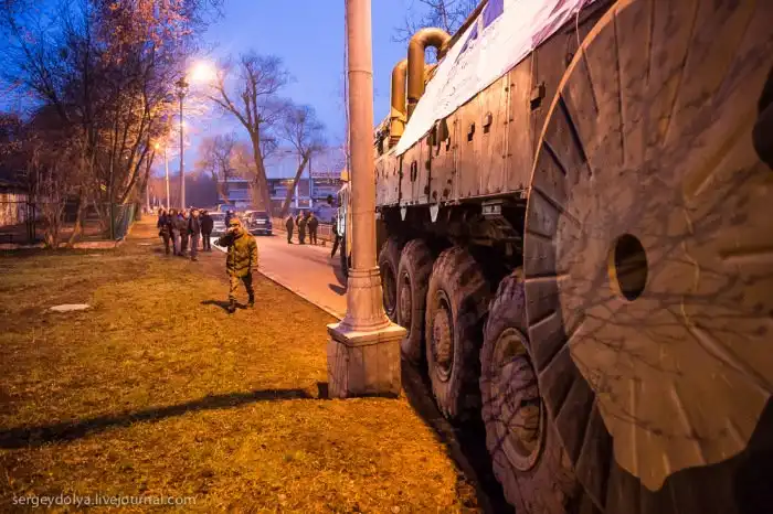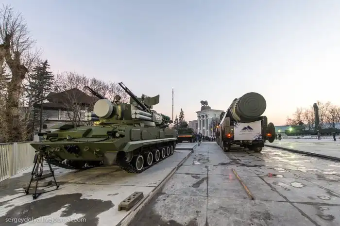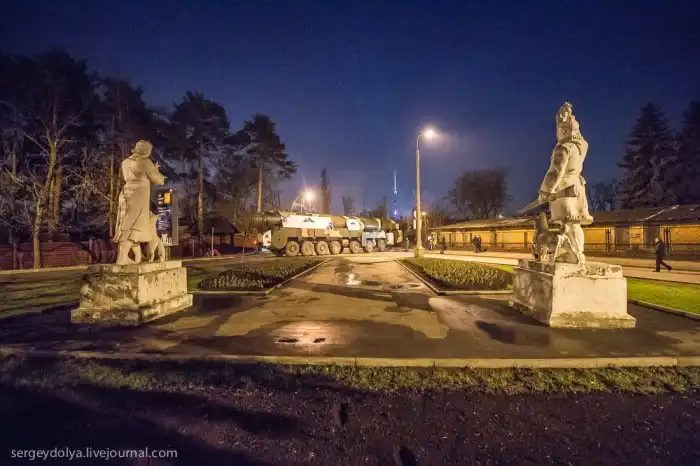 Минувшей ночью на ВДНХ своим ходом прибыл мобильный ракетный комплекс «Тополь», который отныне войдет в состав экспозиции павильона Космос. Подобное решение принято лично Владимиром Путиным. Компанию «Тополю» на площадке составят установка «Бук», зенитные комплексы «Тор», «Оса-АКМ» и «Шилка», истребитель Су-27 и вертолёт Ми-8Т. Узкие аллеи оказались для «Тополя» серьезной задачей, поэтому начали менять маршрут. Столбы и бордюры приходилось аккуратно объезжать. При этом военные были настроены весьма дружелюбно и охотно отвечали на вопросы очевидцев. Как 45-тонная машина в течение 2,5 часов преодолевала 200-метровую дистанцию, смотрите далее.
