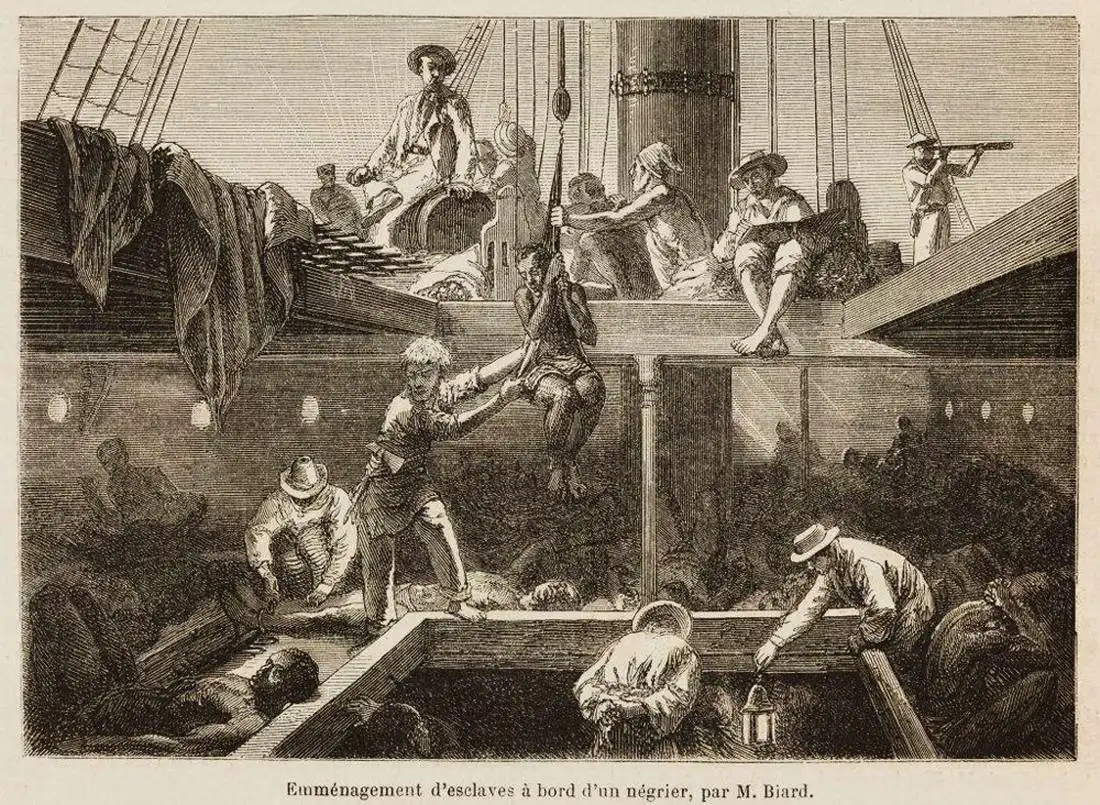 Процесс погрузки рабов в трюм судна (середина 19 века)