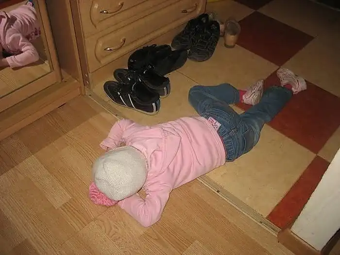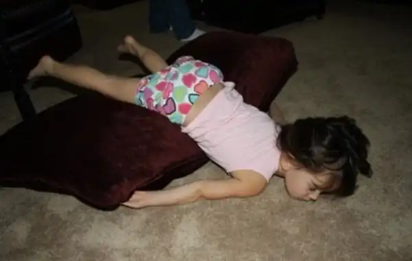 Сон может застигнуть малыша в самый неожиданный момент. И если родители не поймают «ту самую» секунду, то кроха может заснуть прямо там, где он в этот момент сидел (стоял, упал, забрался, провалился – вариантов может быть множество).