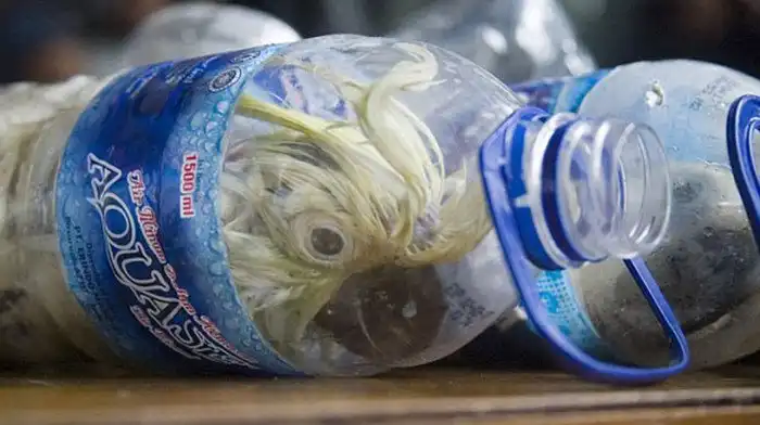 В Индонезии контрабандисты пытались провести через границу редких попугаев в пластиковых бутылках