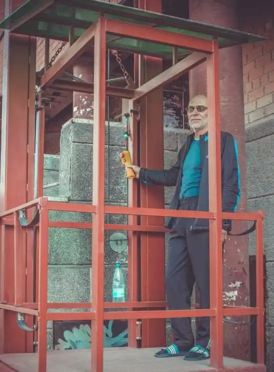 В центре Челябинска пенсионер Александр Владимирович Шустов соорудил для своих внуков-инвалидов наружный лифт у стены 10-этажного дома. 66-летний мужчина днем присматривает за внуками, 20-летним Никитой и 3-летним Мишей, которые не могут передвигаться без посторонней помощи. Врожденный недуг нарушил опорно-двигательный аппарат и внуки Александра Шустова, инженера в прошлом, могут передвигаться только на инвалидной коляске. Чтобы решить проблему с выходом на улицу, дедушка и решил построить лифт.