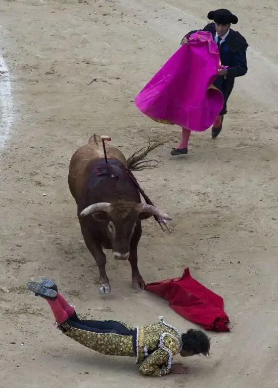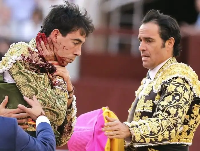 На ежегодном фестивале в Мадриде тореадор Хименес Фортес во время корриды получил серьезные ранения в бою с быком. Разъяренное 640-килограммовое животное, невзирая на полученные травмы и торчащие из него шпаги, подняло на рога матадора, оставив открытую рану на правой стороне его шеи. Молодой человек самостоятельно поднялся и при помощи коллег покинул арену, после чего был доставлен в реанимационное отделение. Рог быка повредил яремную вену, щитовидную железу, пищевод и сонную артерию.
