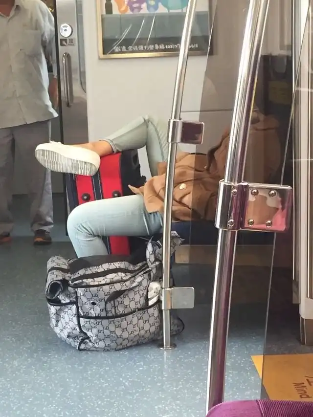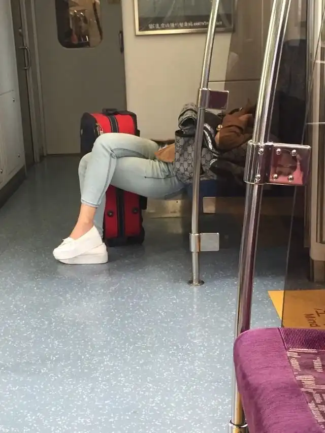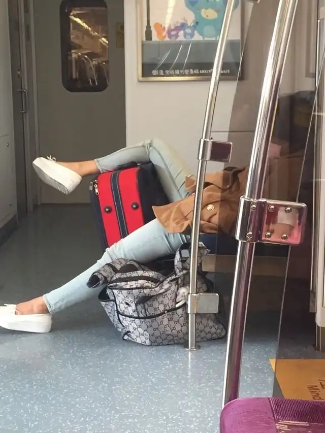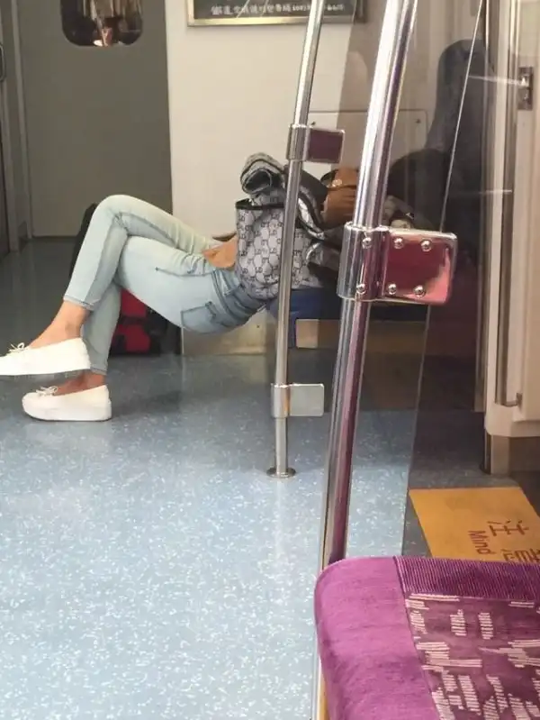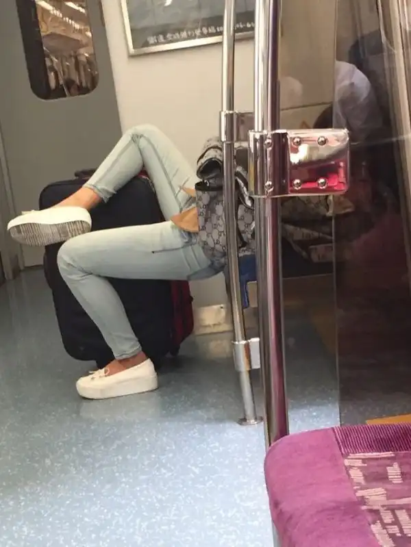 Всегда поражался умению азиатов спать в общественном транспорте. Особенно этим отличаются японцы, но и китайцы тоже не отстают. Эта девушка демонстрирует пассажирам вагона уникальный акробатический номер "Сон в электричке". Когда спать хочется, и не в такой позе вырубишься.