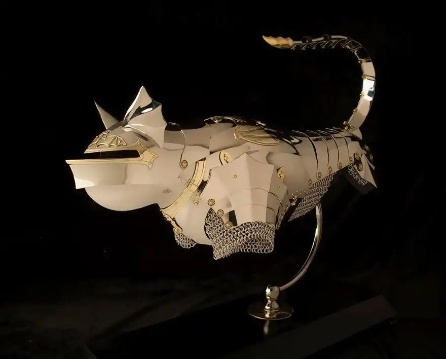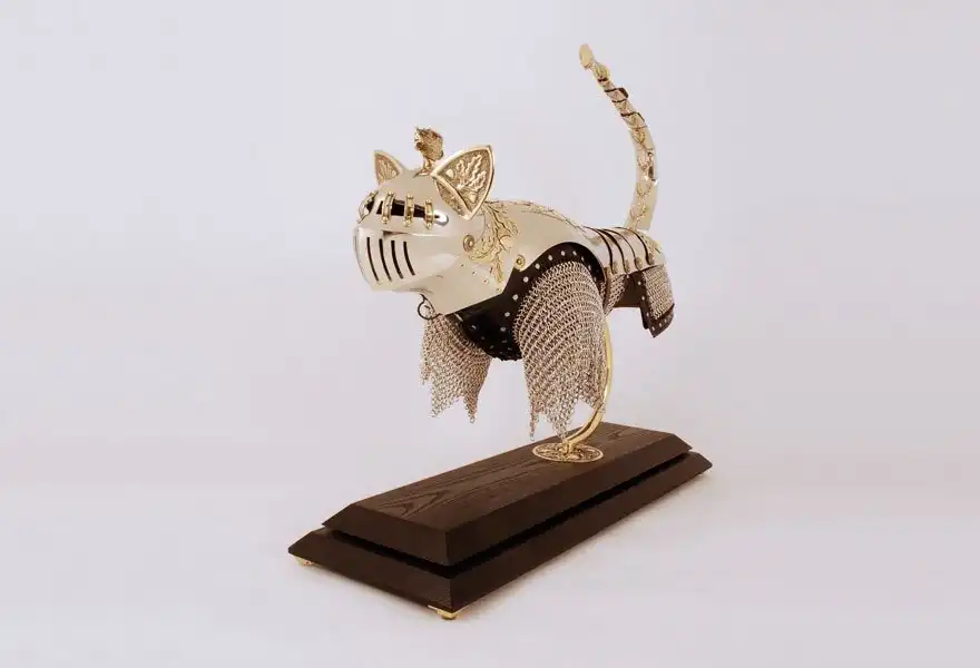 Канадец Джефф де Бур — уникальный художник-ювелир по металлу. Вот уже много лет он создает броню, стилизованную под разные исторические эпохи. Тонкая работа, искусно изготовленные мелкие детали. Только вот доспехи эти предназначаются для… кошек и мышей. Если бы эти древние враги участвовали в средневековых войнах, принимали участие в рыцарских турнирах — они наверняка носили бы именно такое облачение.