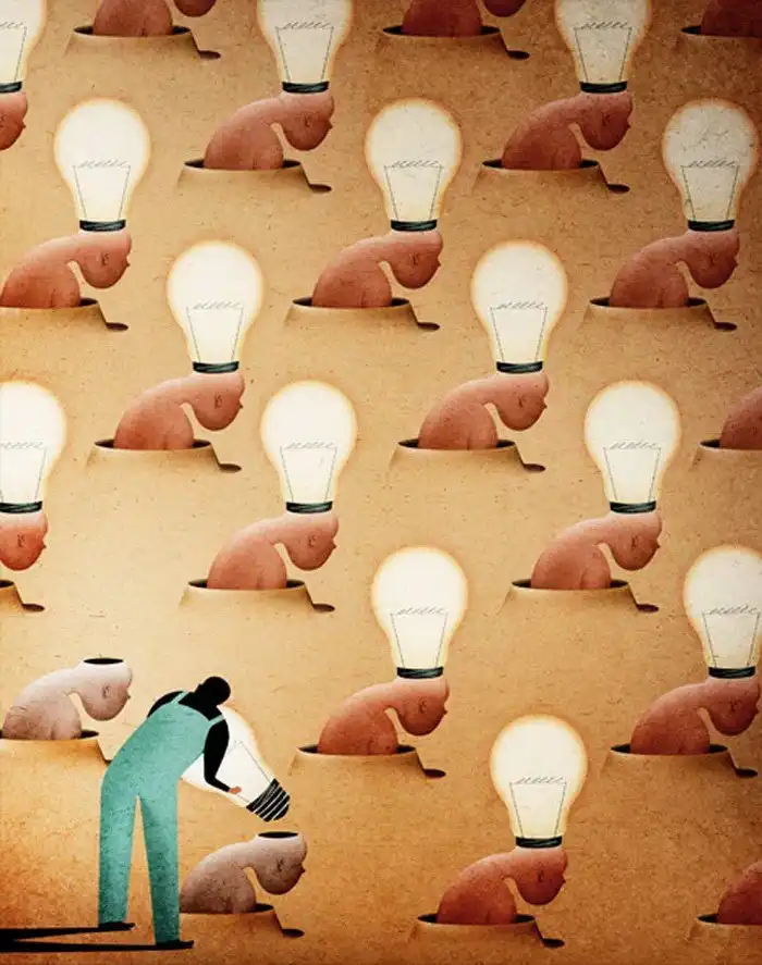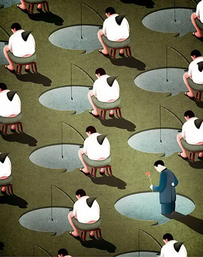 Каи Ти Хсю создает ироничные иллюстрации на тему мира XX века. На этих иллюстрациях высмеивается коммунизм, человеческое общество в целом, стадное чувство и другие, знакомые каждому человеку понятия.