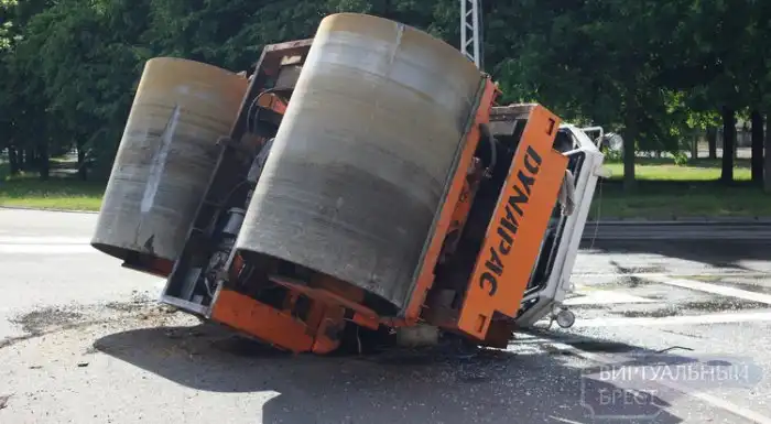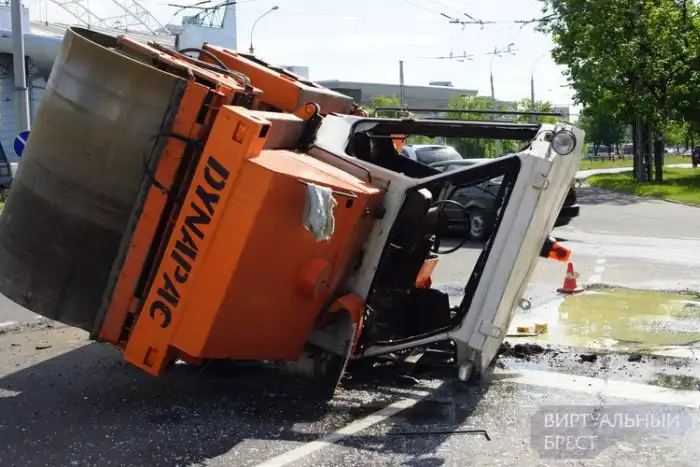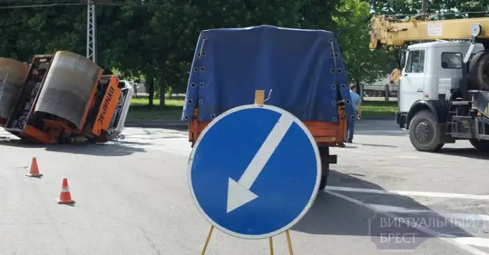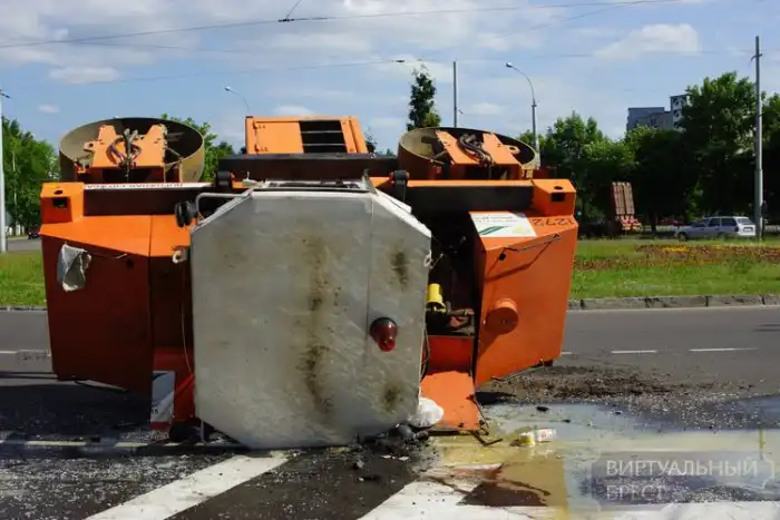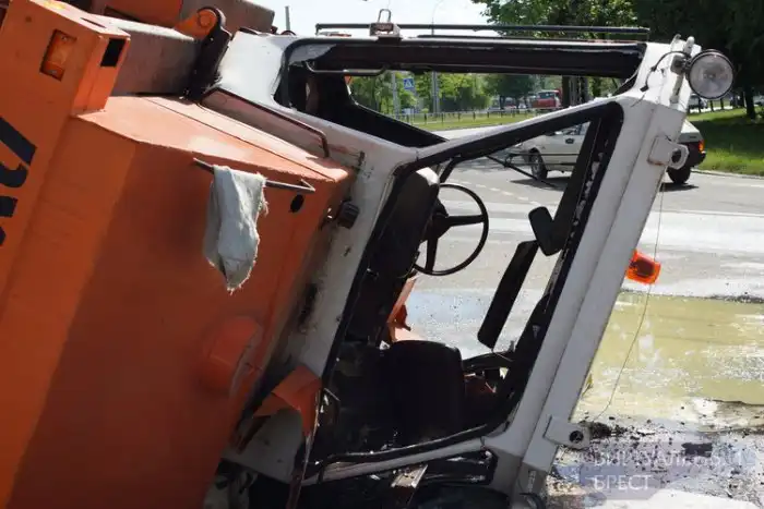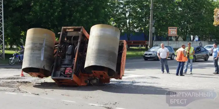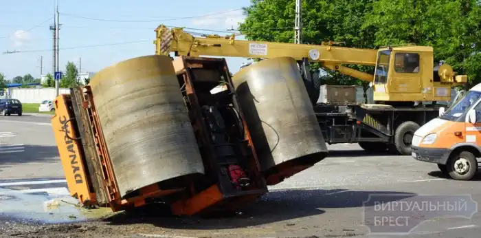 Беспрецедентное ДТП произошло в Бресте, Белоруссия, там опрокинулся каток, который двигался собственным ходом. Авария произошла на кольце улицы Я. Купалы по вине водителя, который не выбрал безопасную скорость движения. Сам водитель не пострадал, зато техника и асфальт получили повреждения. В свое оправдание мужчина говорит, что дорожное покрытие якобы было скользким, поэтому он и не рассчитал скорость. В то же время ГАИ решило проверить, не употреблял ли водитель алкоголь перед тем, как сесть за руль.