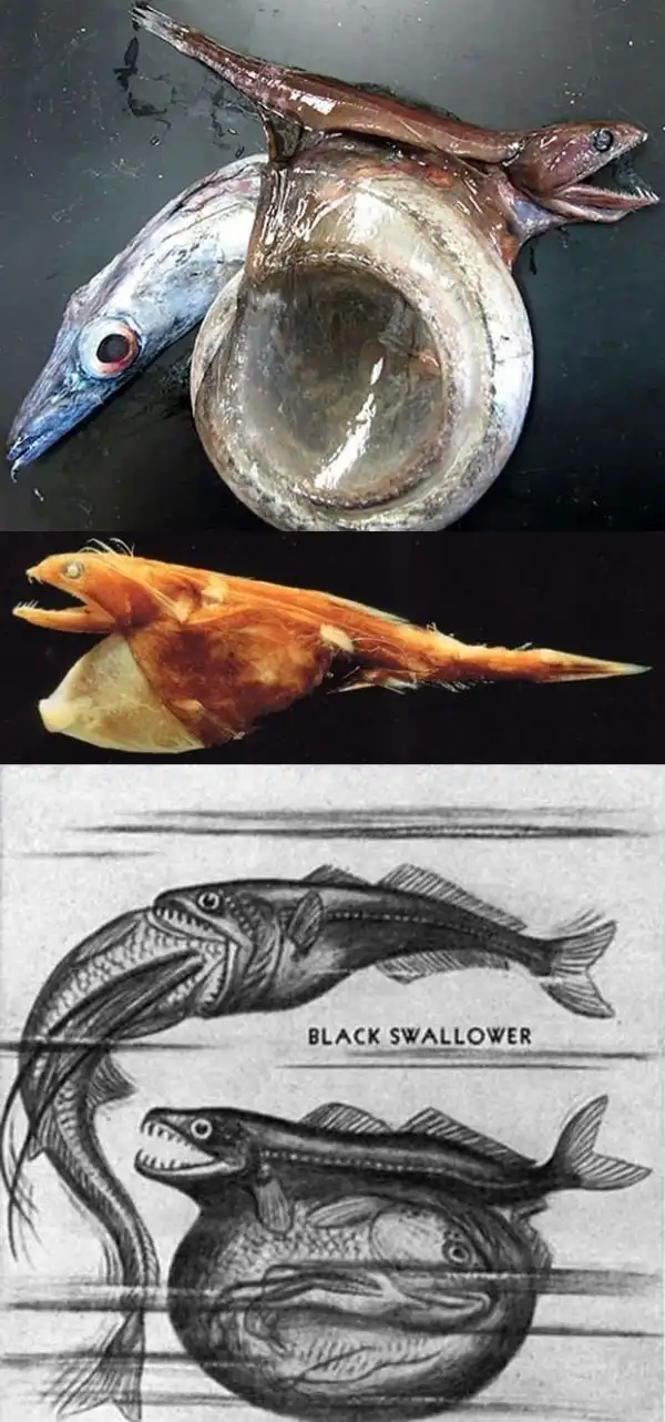 Это живоглотовая рыба из отряда окунеобразных известна тем, что способна заглатывать жертву в 6–12 раз больше нее.