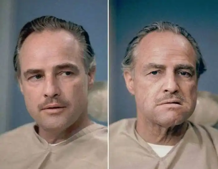 Марлон Брандо без грима и с ним для роли в фильме «Крестный отец».