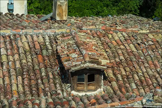 Черепица на крышах вековых зданий тоже медленно сдается власти времени