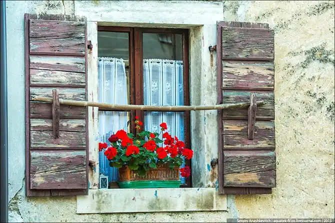 Ты идешь, будто по проходу, прорубленному в скале. А на самом деле тебя окружают стены домов в неизменными деревянными ставнями.Улица изгибается и уходит куда-то вверх.