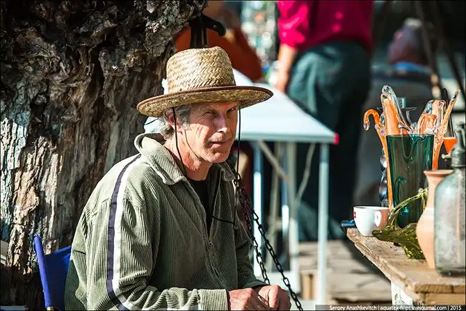 Торговец сувенирами. Я купил у него старую игрушку, выпущенную в середине прошлого века.