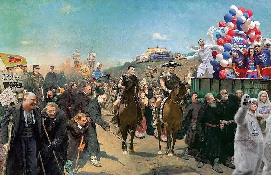 Московский художник Андрей Будаев занимается так называемым политическим и социальным плакатом с 1995 года. Создавая свои яркие коллажи, он комментирует политические перипетии наших дней, используя мировые шедевры живописи, на которых появляются современные политики и прочие «сильные мира сего». То, чем занимается Андрей Будаев, можно назвать дерзкой политической сатирой.