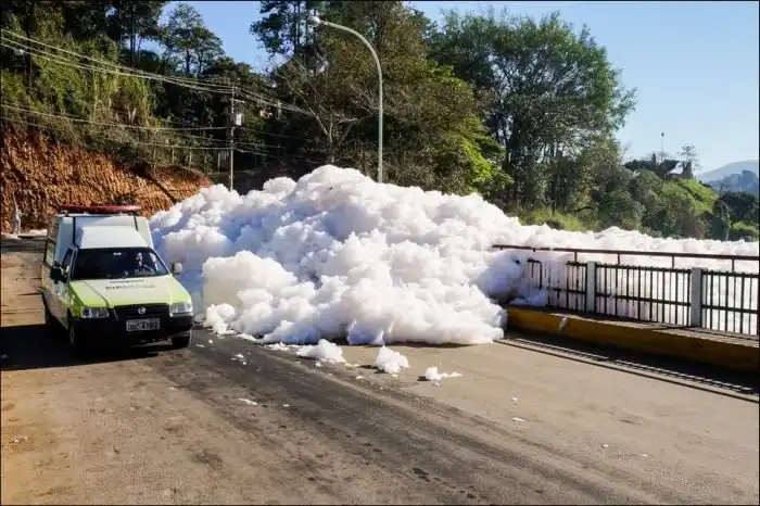 Некоторые улицы бразильского города Сан-Паулу недавно наполнились большими клубами густой пены, которую выбрасывает река Тиете. Пена имеет неприятный запах, что отпугивает туристов и раздражает местных жителей. Образовалась пена после сброса воды с ГЭС выше по течению, и ее появление связывают с высокой концентрацией загрязняющих веществ в реке.