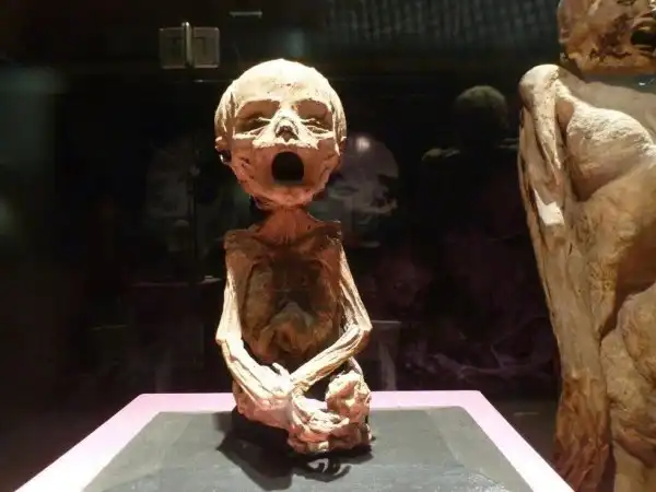 Пожалуй, самыми шокирующими экспонатами музея мумий для посетителей покажутся похороненное тело беременной женщины и изморщиненные тела детей. В музее также находится самая маленькая мумия на планете, которая не больше буханки хлеба.