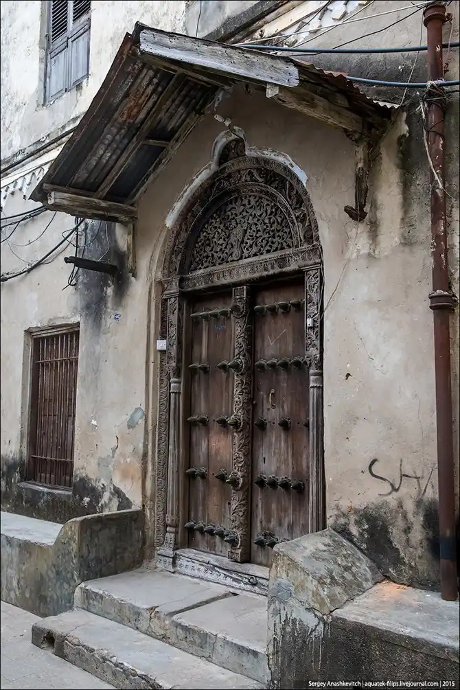 Все старые резные двери обязательно украшены выступающими металлическими конусами самых разных форм и конфигураций. Эти конусы пришли на Занзибар из Индии, где у них была самая практичная функция. Закрепленные на входной двери в дом, они должны были защищать его от… слонов! Да-да, именно от слонов, чтобы те не ломились в дом и не разрушали вход в него.