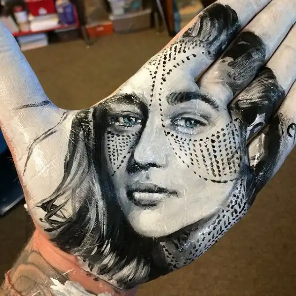 Художник Рассел Пауэлл (Russell Powell) создает потрясающе реалистичные портреты на нестандартных поверхностях – своих руках. Калифорнийский учитель в качестве холста использует собственное тело – он пишет портреты как известных, так и рядовых людей на своих ладонях.