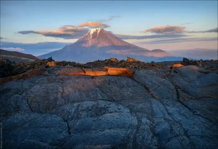 Камчатка — настоящее царство вулканов: Мутновский, Горелый, Плоский Толбачик, Горный зуб, Вилючинский и, конечно же, царь–вулкан всей Евразии — Ключевская сопка высотой почти 5 километров. Всего здесь более 500 вулканов, из которых 28 — действующие, и почти на всех из них можно взобраться.