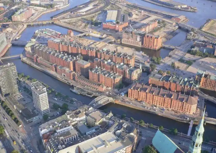 В порту немецкого Гамбурга находится самый большой в мире комплекс складских помещений, который носит название Speicherstadt. На площади в 26 гектаров находится 17 комплексов, площадью около 300 000 квадратных метров каждый. 7- и 8-этажные здания выполнены из красного кирпича и обладают уникальным дизайном, нехарактерным для складских помещений. С 1991-го года эти склады, где хранили различные ценные товары и располагались офисы компаний, были включены в список мирового архитектурного наследия ЮНЕСКО и стали популярным местом для туристических экскурсий и прогулок.