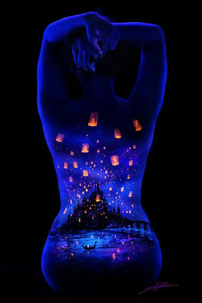 Потрясающий флуоресцентный боди-арт