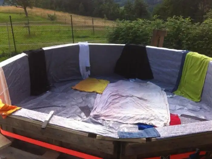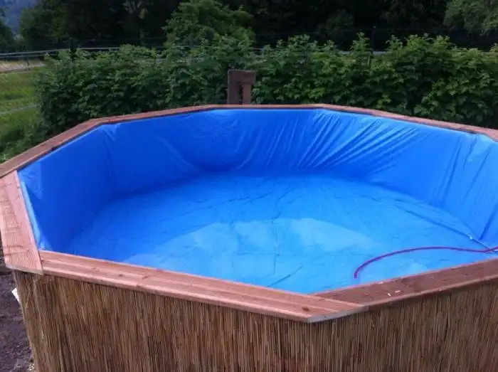 В жаркий летний день приятно поплескаться в прохладной воде, и особенно приятно сделать это в своем собственном бассейне. Если бассейна у вас нет, но очень хочется его иметь, то предлагаем вам познакомиться с конструкцией одного оригинального самодельного дворового бассейна, сделанного из простых деревянных поддонов. Для данной конструкции потребовалось 9 поддонов, но их количество может варьироваться.
