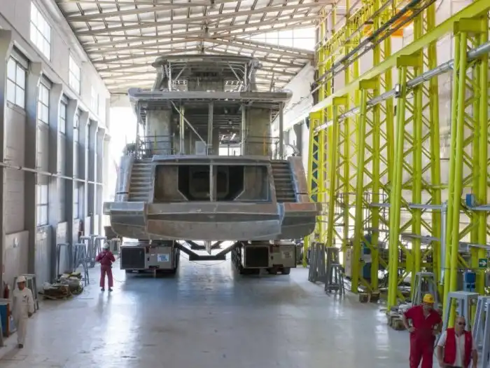 На итальянских верфях полным ходом идет строительство яхты Dynamiq GTT, которая должна стать самым быстрым судном в своем классе. Стоимость яхты оценивается в 17 миллионов евро, а ее постройка осложняется тем, что необходимо перемещать судно из одной мастерской в другую.
