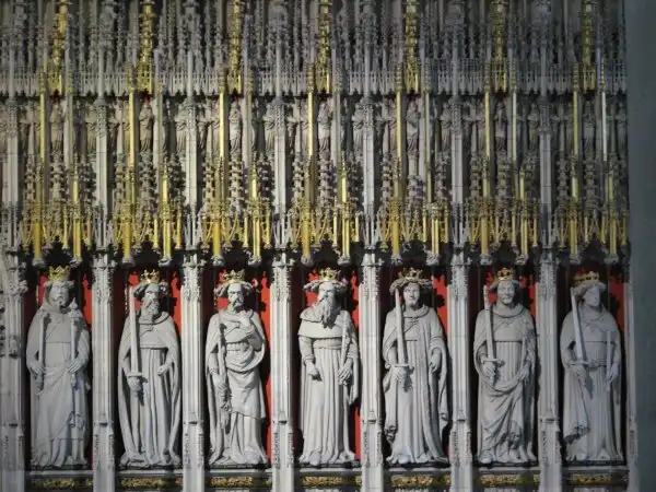 На отделяющей хоры от нефа каменной галерее XVв. Стоят статуи королей Англии от Вильгельма I до Генриха VI.