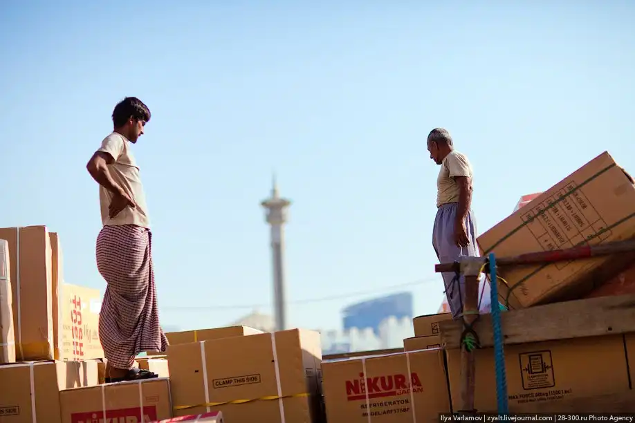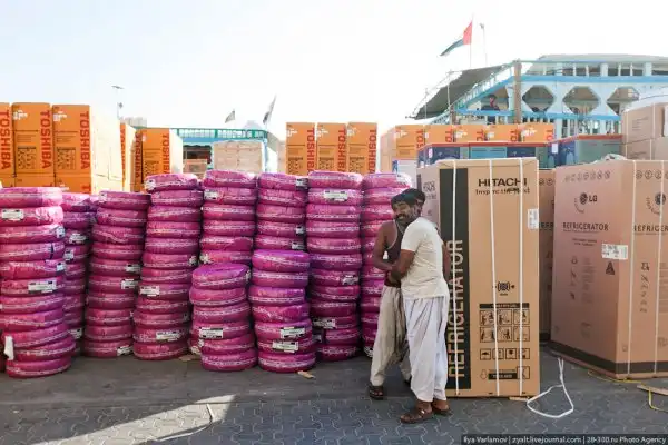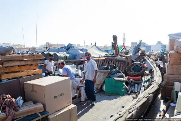 Недалеко от золотого базара в Дубае есть пристань, где стоят небольшие торговые корабли.