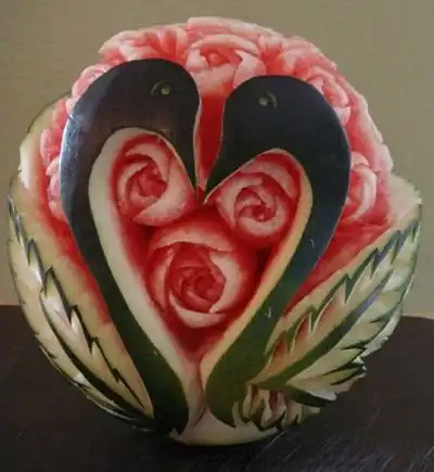 Арбуз - любимое лакомство многих из нас. Родной землей этой чудо - ягоды является Южная Африка. В Россию арбузы были завезены татарами в XIII—XIV веках как иноземная сладость. На сегодняшний день арбуз является не только вкусной ягодой, но и основой для полета фантазий мастеров по карвингу (искусство художественной резки по овощам и фруктам). Предлагаю посмотреть и оценить некоторые работы необыкновенного творчества.