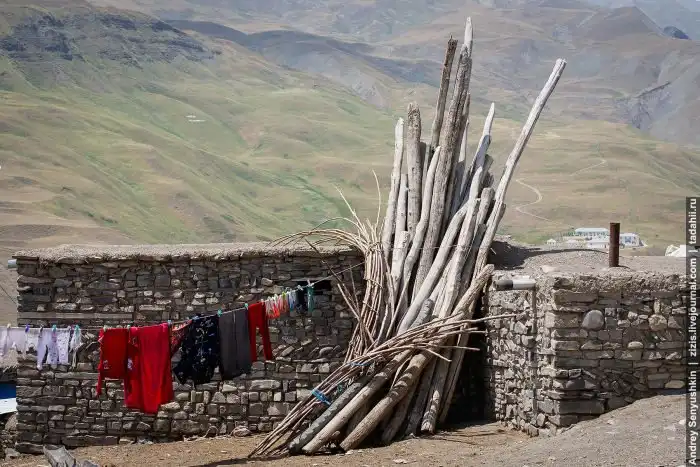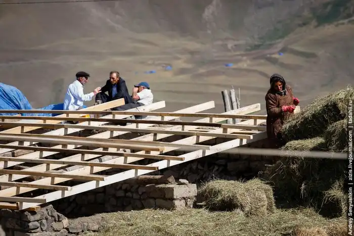 Как вы понимаете, в горах на такой высоте со строительным материалом проблем нет. Камни тут кругом, в селе большое стадо овец, есть лошади и ослы - навоз дело наживное. С деревом, конечно, напряженка. Приходится спускаться ниже и добывать древесину там.