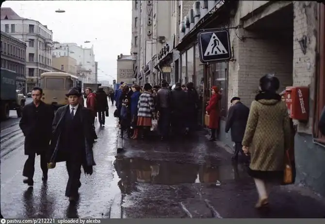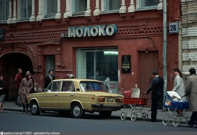 Молодые родители с немецкими детскими колясками, против которых была развёрнута целая кампания из-за того, что они якобы способствовали развитию косоглазия. А в этот молочный магазин, по словам очевидцев, иногда приезжал Юрий Никулин на машине.