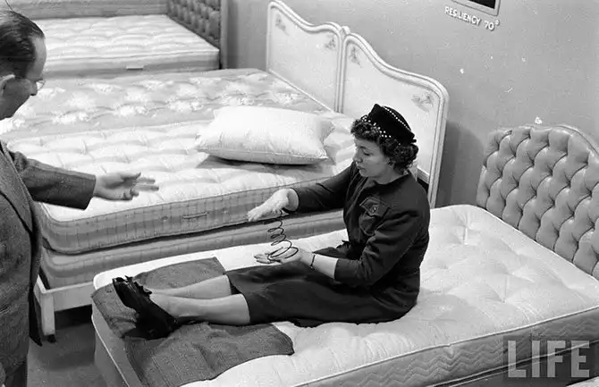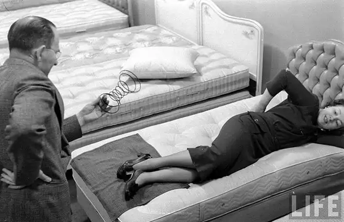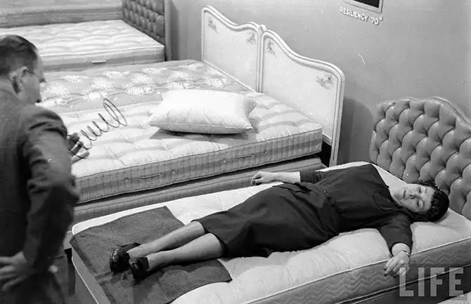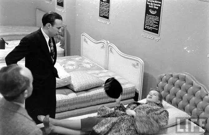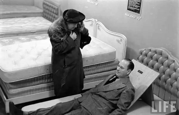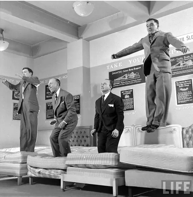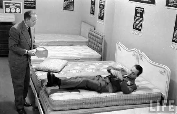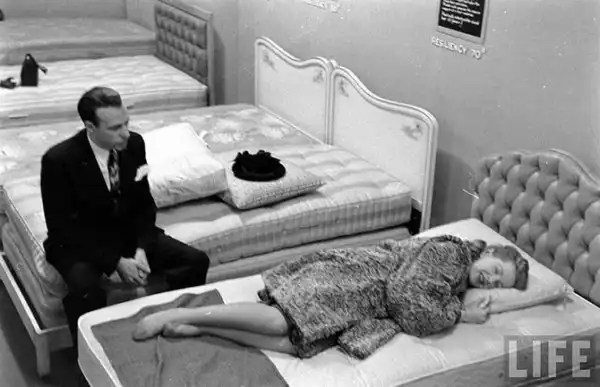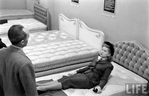 Рекламные испытания кроватей фирмы «Lewis & Conger», США 1948-й год.