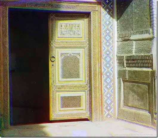 Часть входной двери с правой стороны Тилля-Кари, Самарканд. Между 1905 и 1915 годами.