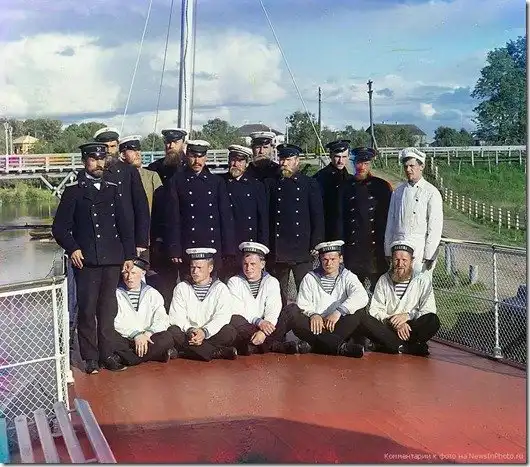 Экипаж парохода «Шексна» МПС (Министерства Путей Сообщения), Российская Империя. 1909 год.