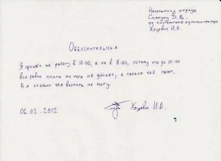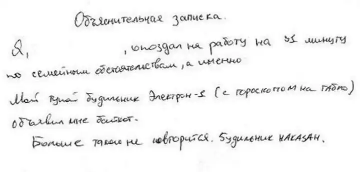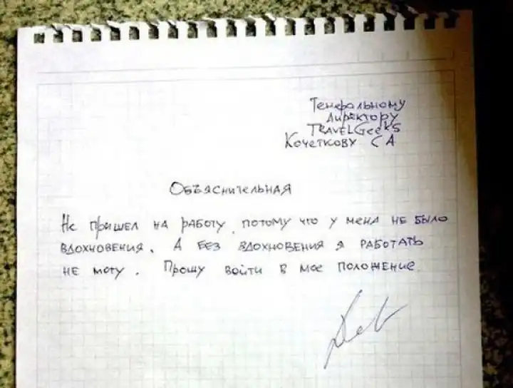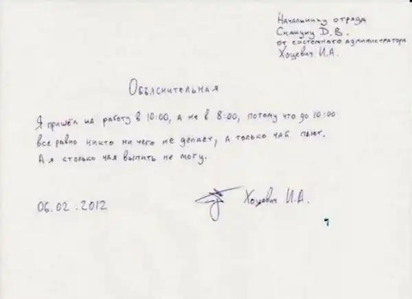 Замечательная коллекция самых душевных, смешных и искренних объяснительных записок, которые когда-либо лежали на столе директоров школ и предприятий.