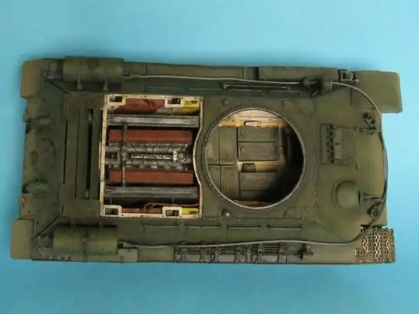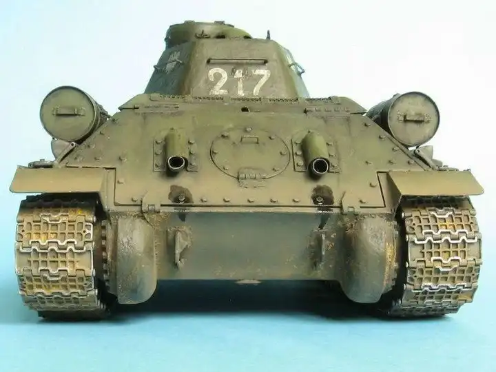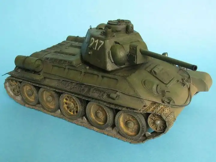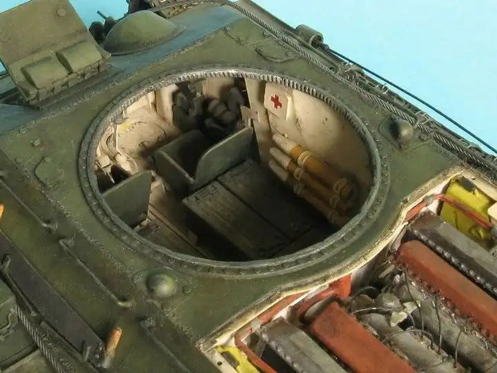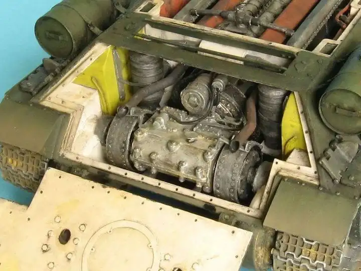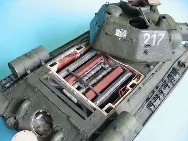 Модель является настоящим шедевром ручной работы, Дарек провел множество часов работая не только над внешним видом танка T-34/76, но и над внутренними деталями скрытыми от глаз наблюдателя. Двигатель, коробка передач, внутреннее оборудование кабины танка — всё проработано очень тщательно и до мельчайших деталей. Обратите внимание на текстуру поверхности танка, она выполнена невероятно реалистично, даже сварные швы на компонентах корпуса выглядят как настоящие.