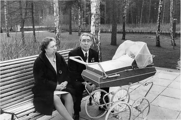 Леонид Брежнев с женой и правнучкой.