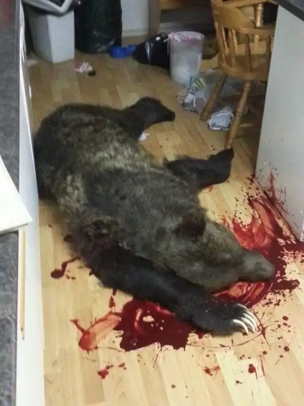 Ник Траверс из города Кимберли, Британская Колумбия, Канада, может похвастаться прекрасным сторожевым псом. Несмотря на свой молодой возраст, собачка посреди ночи подняла лай, почуяв неладное. Мужик тоже не растерялся и прихватил ружье. Оказалось, что на кухне хозяйничает 15-летний медведь гризли, которого Ник и пристрелил.