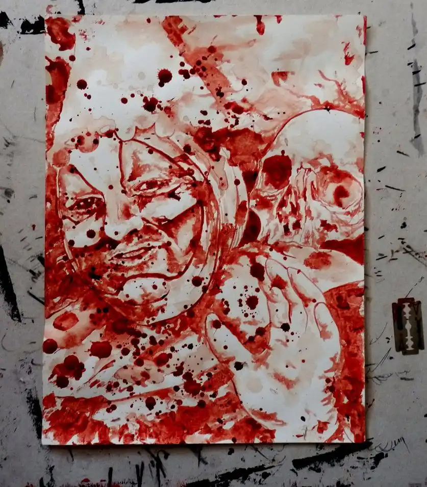 Автор этих картин Maxime Taccardi, активно использует свою кровь в качестве краски.