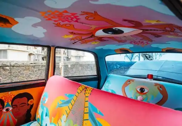 Команда молодых индийских дизайнеров Taxi Fabric решила исправить данную ситуацию, а заодно и показать свои таланты. Для обеспечения финансирования проекта ими была запущена кампания на Kickstarter, после успешного завершения которой парни и девушки приступили к воплощению в жизнь своей мечты. Для этого они печатают на больших холстах невероятно яркие рисунки, после чего украшают ими салоны такси. И вот что у них получилось: