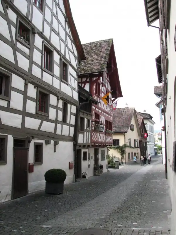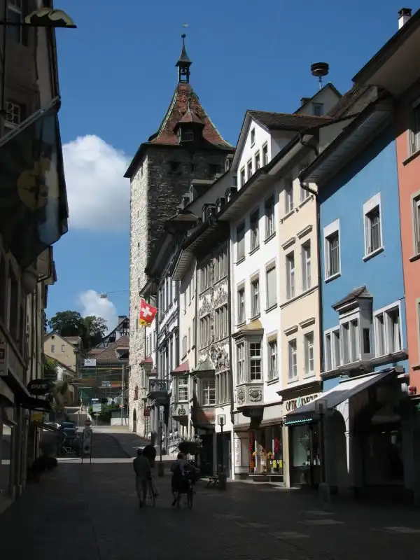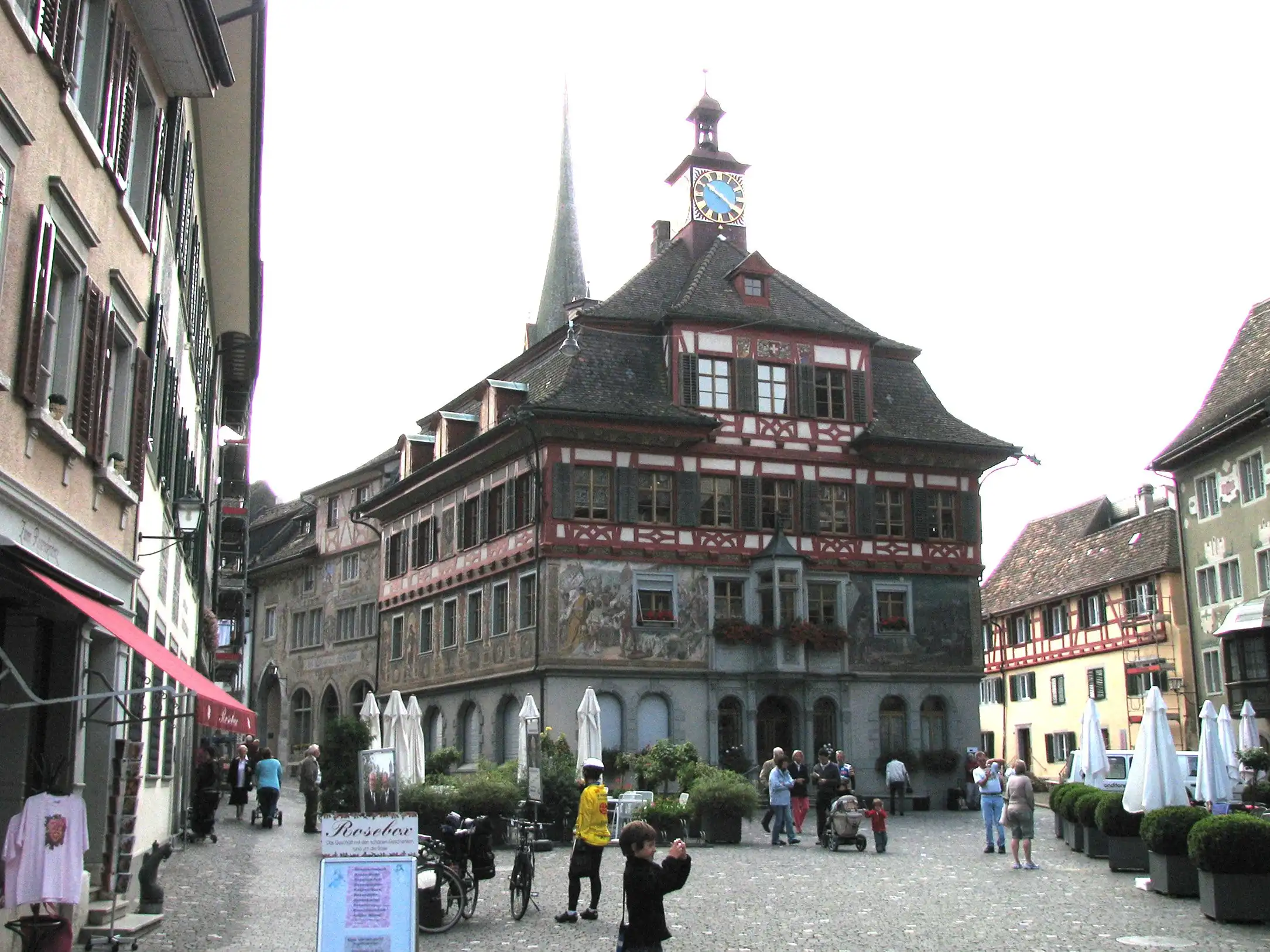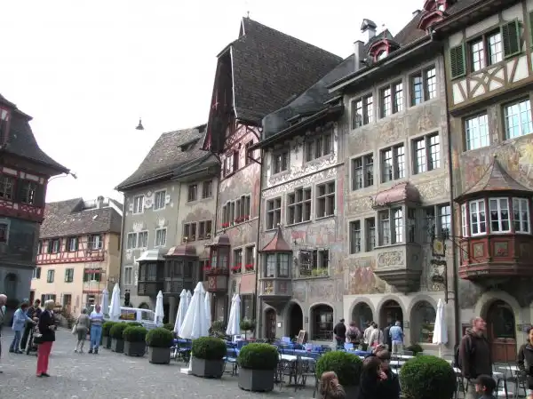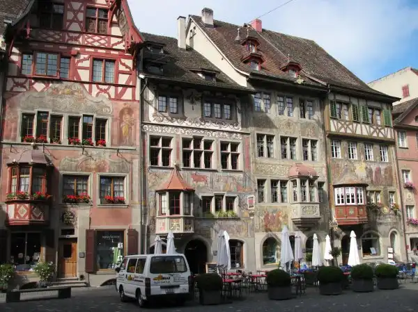 Следующий городок по маршруту – Шаффхаузен – столица одноимённого кантона, расположен на северном берегу Рейна в 4 км. Выше Рейнского водопада. В Средние века город стал важным торговым центром, так как именно в этом месте лодочники разгружали привезённые товары. Вдоль мощёных улиц старого города Шаффхаузена стоят здания в разных стилях – готическом, ренессанс, барокко и рококо. У части из них фасады красиво расписаны, а у других на верхних этажах сделаны эркеры (закрытые выступающие балконы).