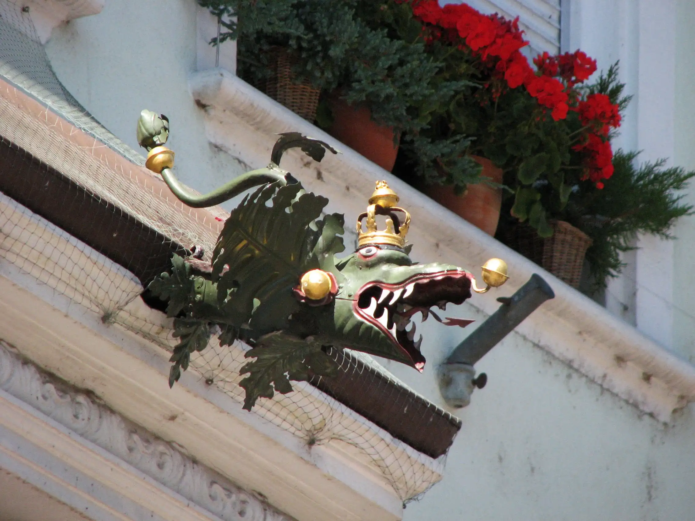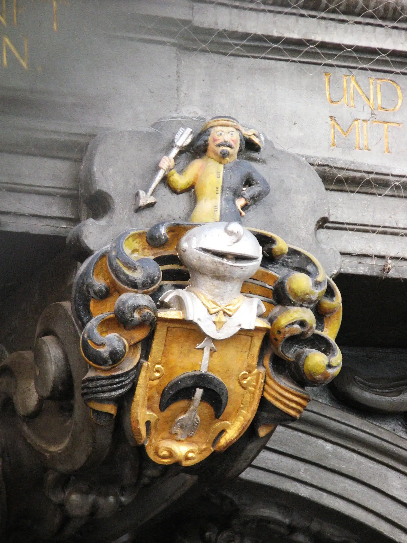 Фасады домов старого города украшены разнообразными архитектурными деталями, отражающими вкусы и профессии владельцев зданий.