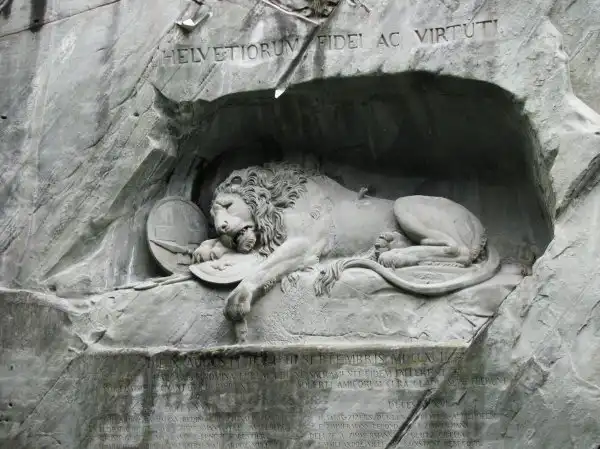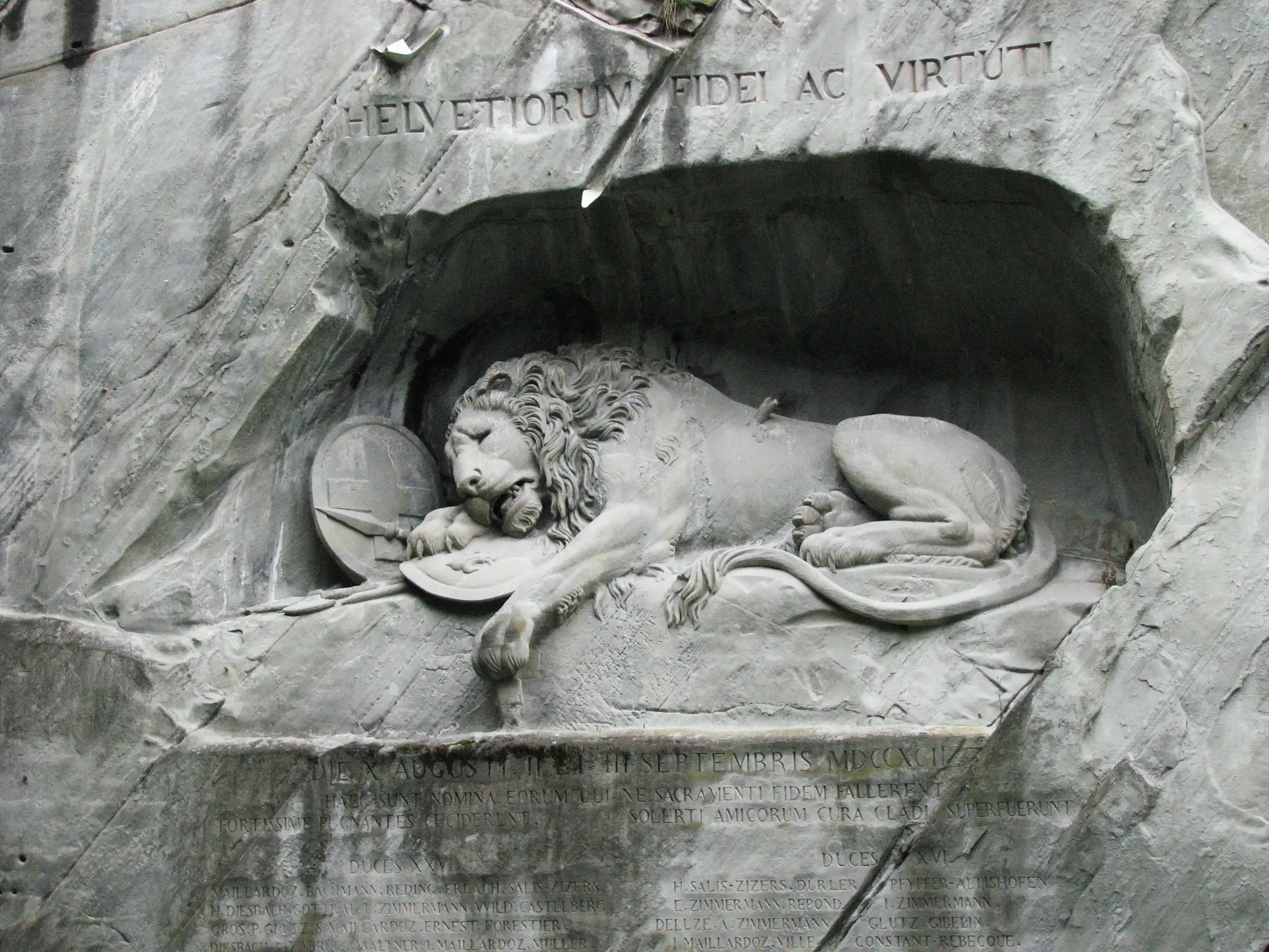 Мемориал “Умирающий лев” с именами всех погибших тогда гвардейцев вырезан в скале датским скульптором Торвальдсеном. Он был открыт в 1821 году. Памятник отражается в водах небольшого пруда и вызывает чувство грусти и сострадания.