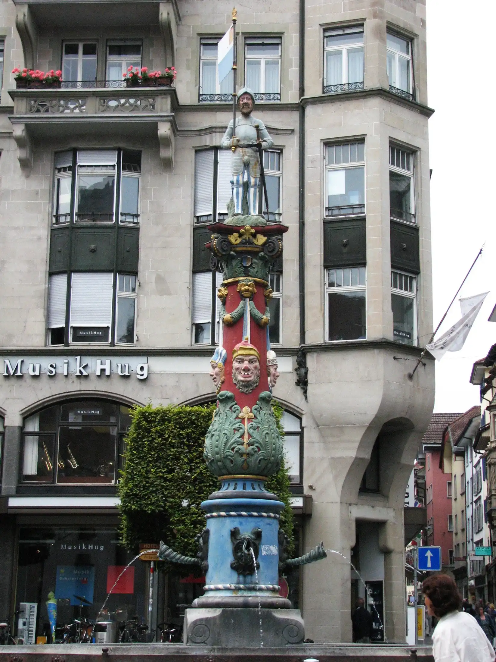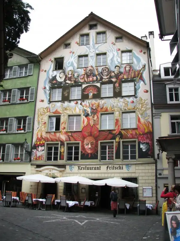 На площади Каппельплац стоит фонтан, увенчанный фигурой Фричи, легендарного персонажа, который ассоциируется с весной и радостью. Его прославляют во время большого весеннего фестиваля в Люцерне, который называют “Фаснахт”.
